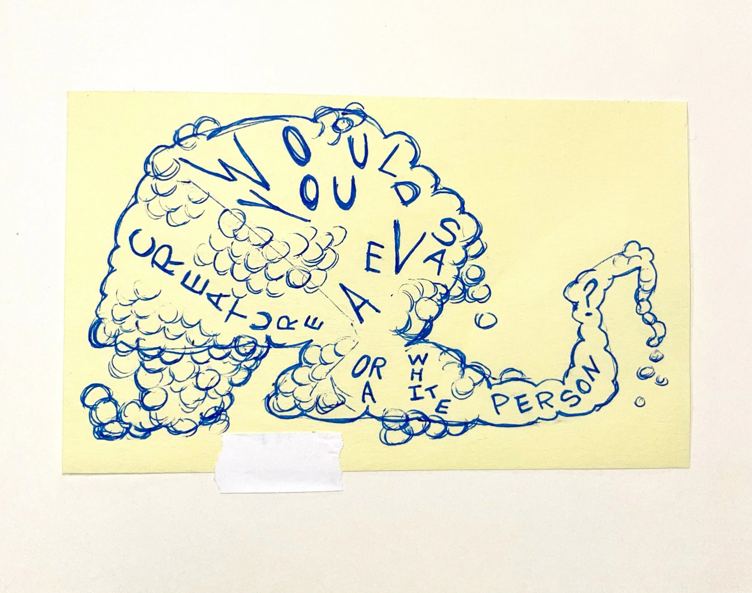 A doodle of a skull made of bubbles with the phrase 'Would you EV4? Or a white person?' written inside.